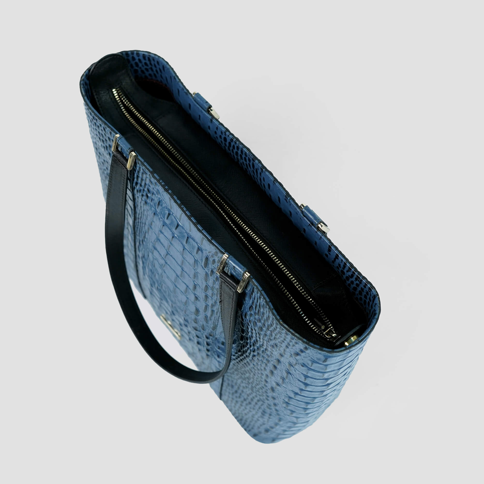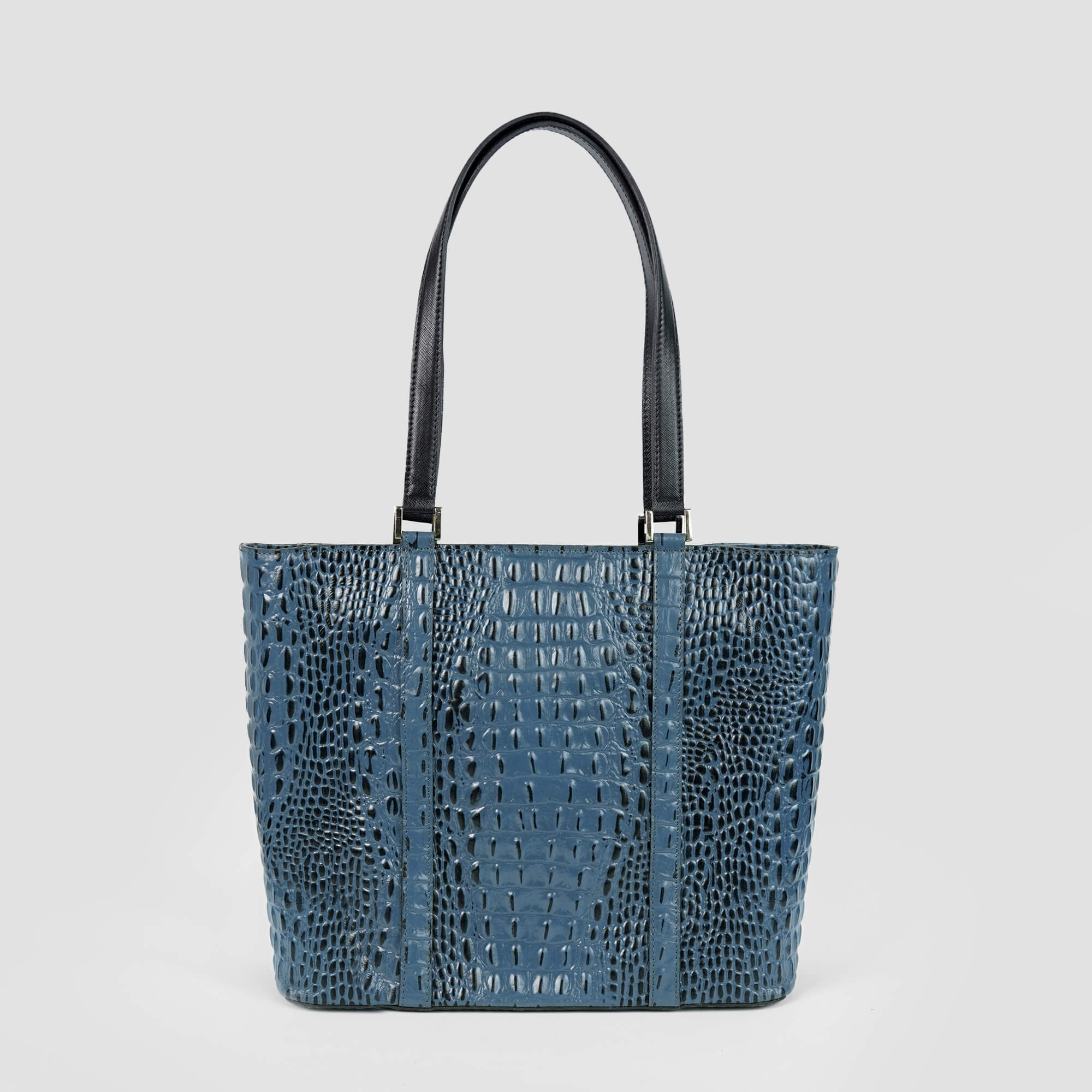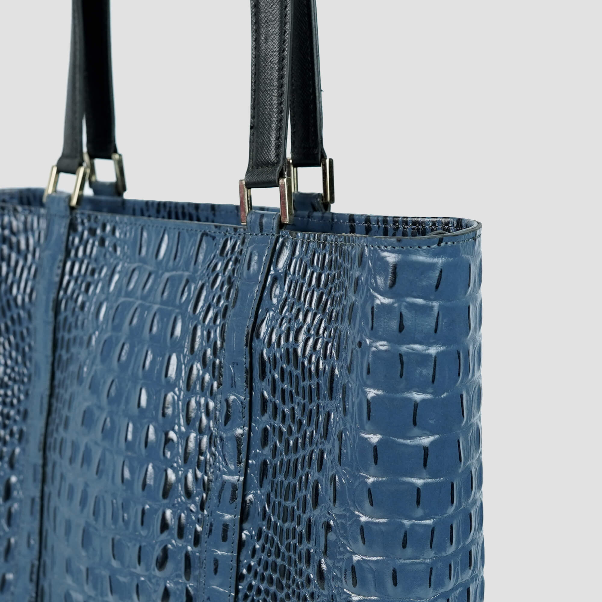 Sophisticated, structured, and effortlessly elegant — the Leather 101 Croc-Embossed Blue Tote embodies timeless luxury. Crafted from 100% genuine leather, this statement piece showcases an exquisite crocodile-embossed texture, polished to a lustrous finish that highlights its depth and detail.