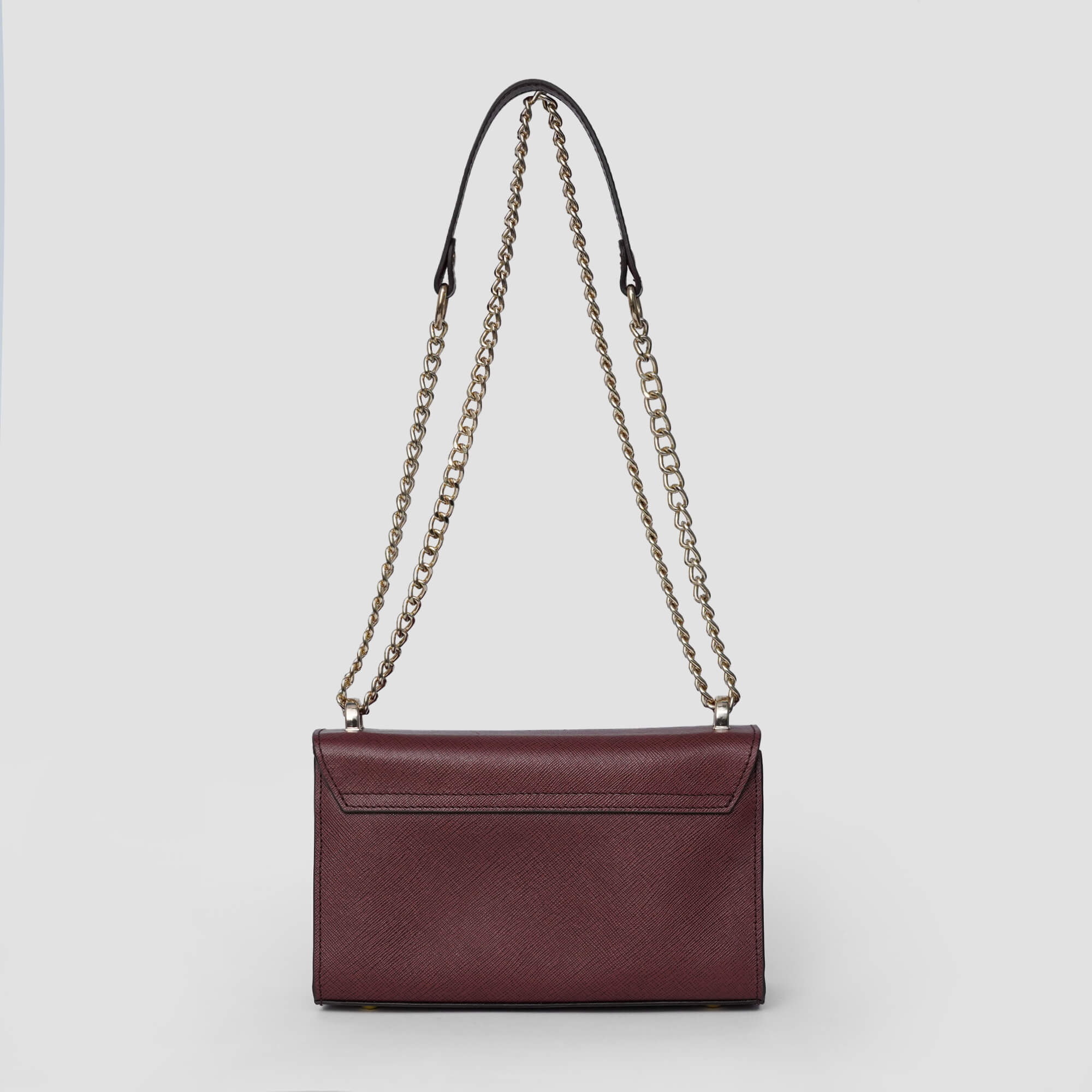Featuring a sleek rectangular silhouette, it’s adorned with luxurious gold-tone hardware and a chic chain-and-leather shoulder strap that allows for versatile wear — from day sophistication to evening glamour.